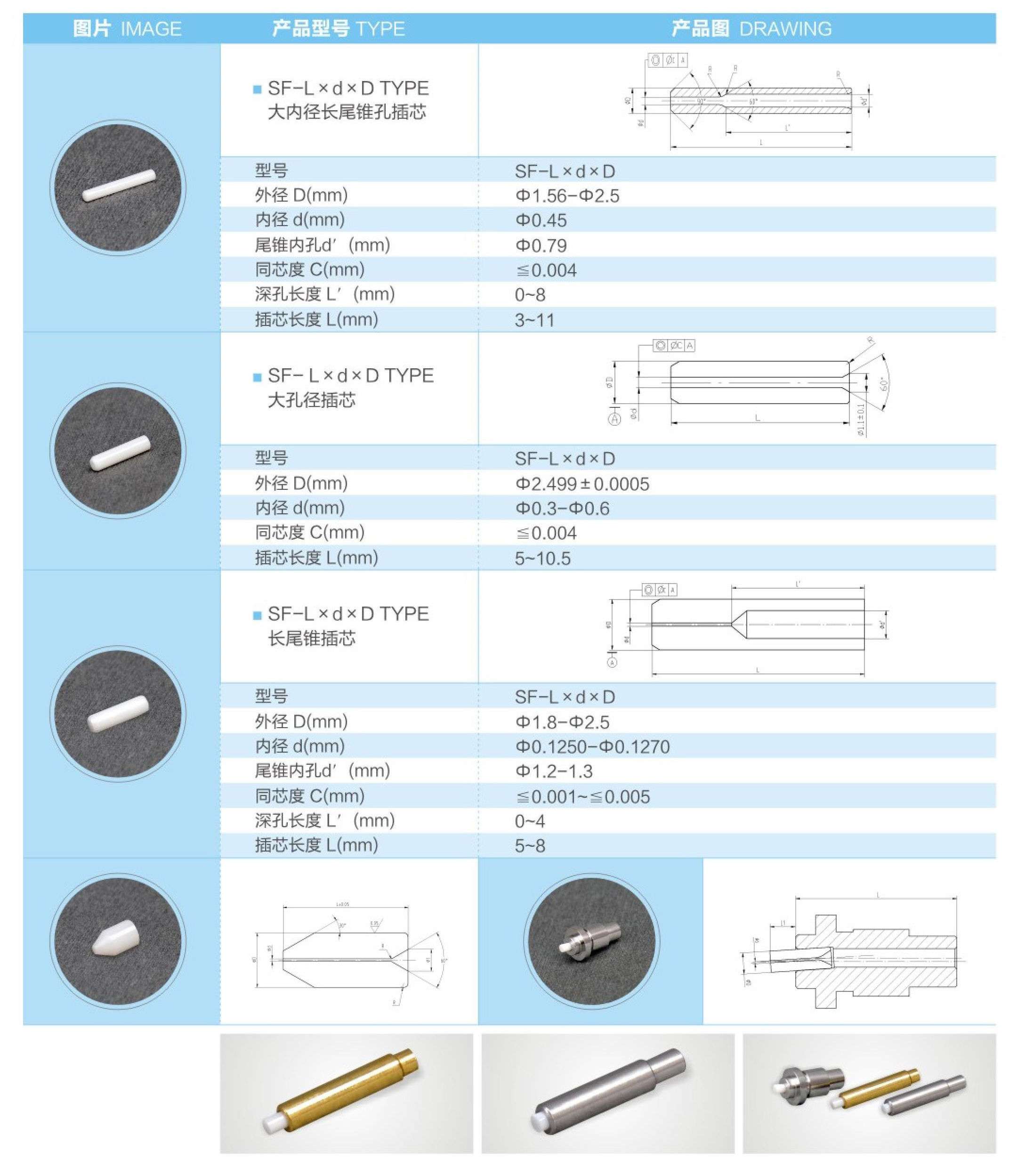 各種規(guī)格插芯、多種插芯端面形式